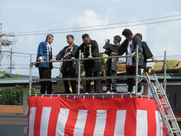 御山車出発前を前にして役員の挨拶です